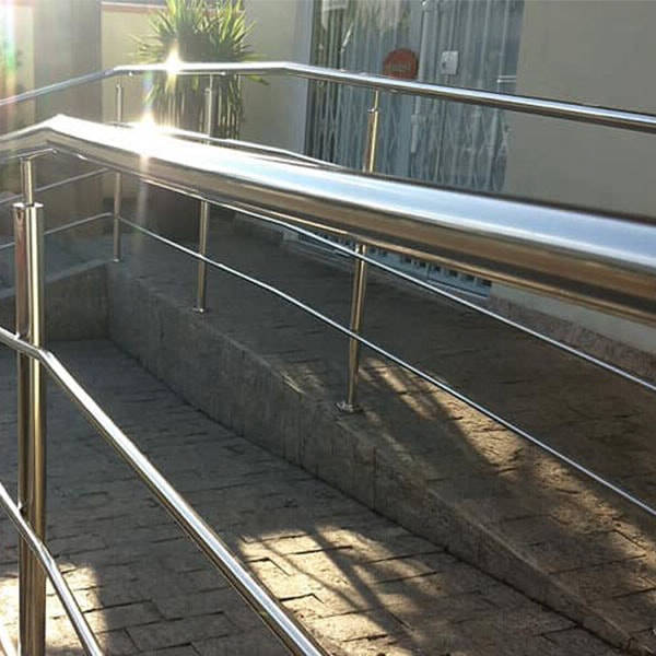 Guarda corpo fabricado em aço inox de alta qualidade seguindo o padrão de segurança exigido pelos Bombeiros